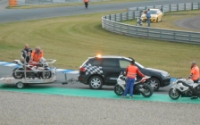 The safety features of the circuit as well as the organisation are excellent, but rarely needed to be tested. Here 3 bikes are being picked up by the circuit recovery vehicle after slipping into the gravel trap.