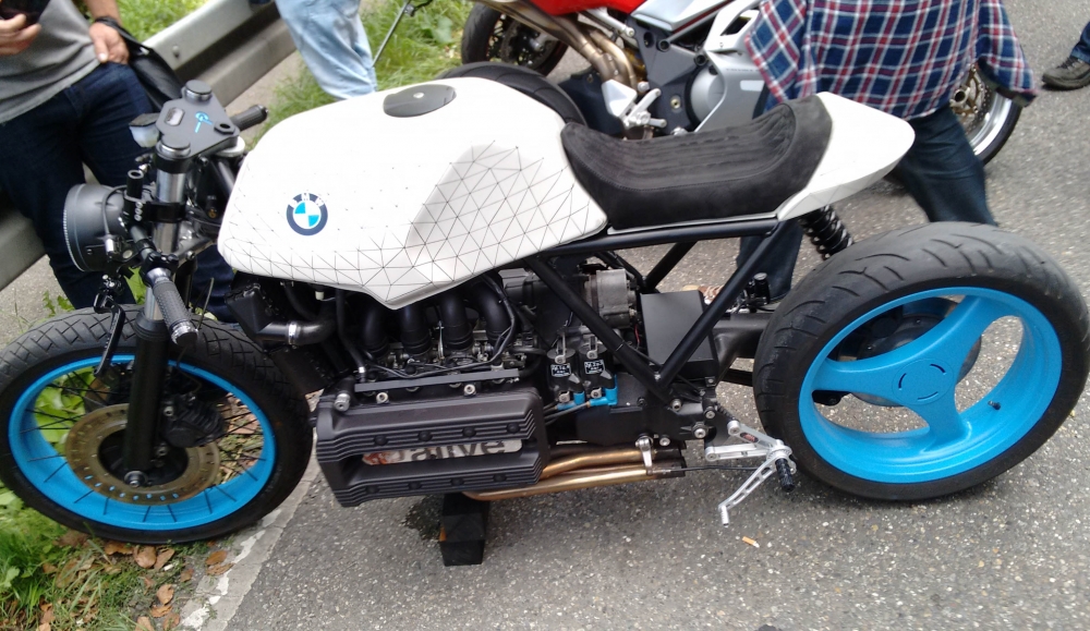 BMW K100s are getting trendy for customizers, probably because it is getting more difficult to find air cooled boxers for a reasonable price now. But where there's a will . .