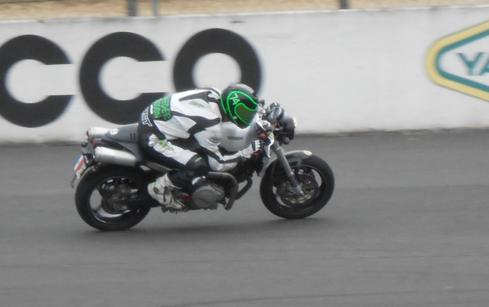 Sylvain, close behind on the Ducati Mike Hailwood replica.