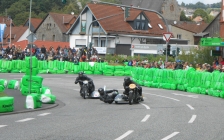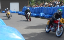 Sidecars always play a big role in the attraction of Schotten with their dramatic slides around the tight curves of this street circuit.