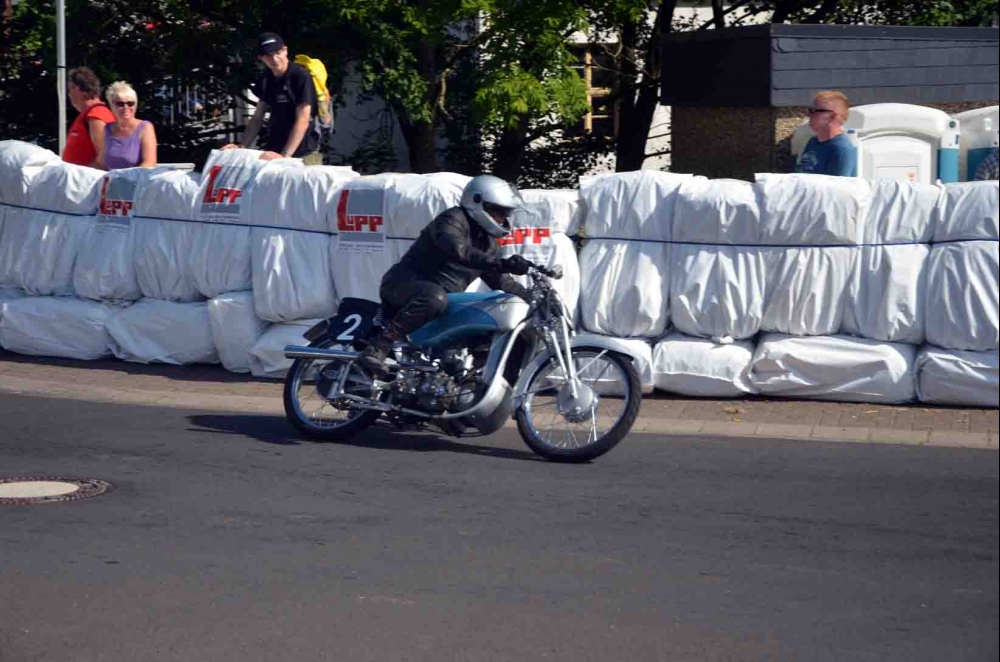 Real 'class' in my (English) opinion, the 1962 Norton Manx 500 of Christian Mangold, the 1961 Norton 350 of Dieter Bingel and the 1957 500cc Gilera Saturno Corsa of Guiseppe Lucchinetti in the background left.