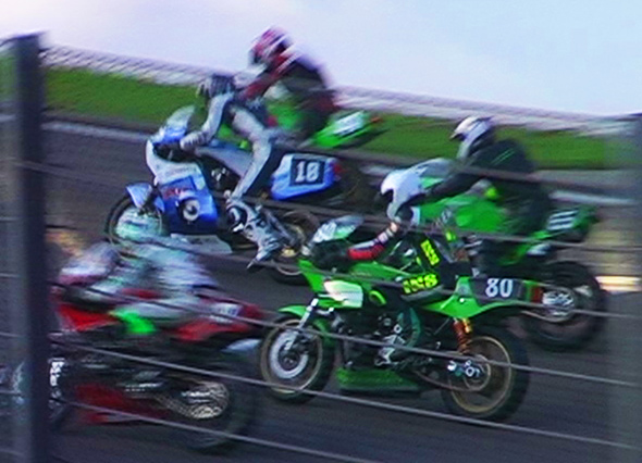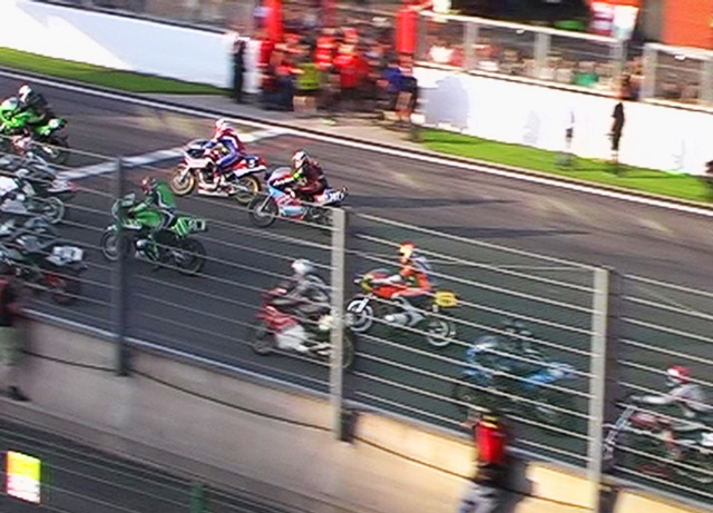 Team SCERT Suzuki XR69 coming through the S bend before the start finish straight.